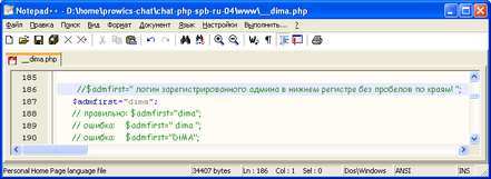 ● Впишите в массив $admlist имя вашего будущего логина и удалите те логины, которые там записаны по-умолчанию. Не забудьте после настройки чата зарегистрировать этот логин, чтобы получить права.