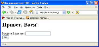 Поскольку знать, что написано на кнопке submit, нам необязательно, в строке можно удалить атрибут name, сократив описание кнопки до (листинг form_4.php). В этом случае, браузер отправит POST-запрос name=Вася.