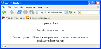 то в ответ вызовется email.php, который выведет на экран примерно следующее: