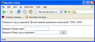 echo 'Укажите год рождения! Допустимый диапазон значений: 1900..2004