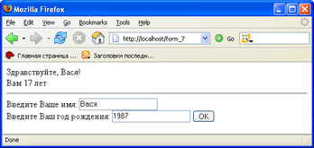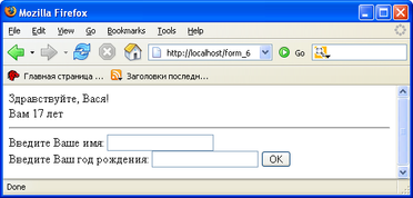 Изменим последний пример, чтобы пользователю не нужно было повторно заполнять поля. Для этого заполним атрибуты value элементов формы только что введенными значениями.
