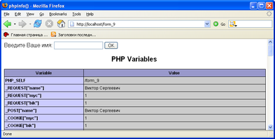 Почему она упоминается в главе, посвященной формам? Потому что функция phpinfo() - удобнейшее средство отладки.