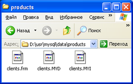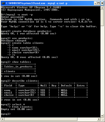 После этого следует набрать: mysql>use products;