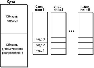 Основные области памяти, с которыми работает Java VM, показаны на рисунке 13.2.