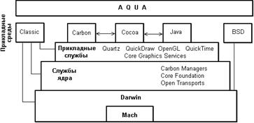 Mac OS X представляет собой удивительное сочетание оригинальных закрытых программных технологий Apple с открытыми технологиями, ставшими промышленными стандартами. Архитектура Mac OS X, показанная на рисунке 8.3, имеет явно выраженную иерархическую структуру.