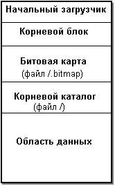 Корневой блок имеет структуру каталога и содержит информацию о следующих специальных файлах: