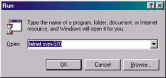 На панелі задач Windows вибрати Start-> Run і ввести команду: telnet svm-070.