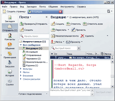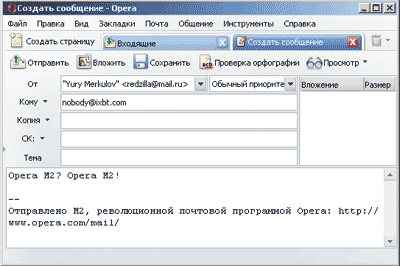 Будучи частиною інтегрованого пакету, поштовий клієнт не викликає жодних ускладнень за наявності навиків роботи з браузером Opera.