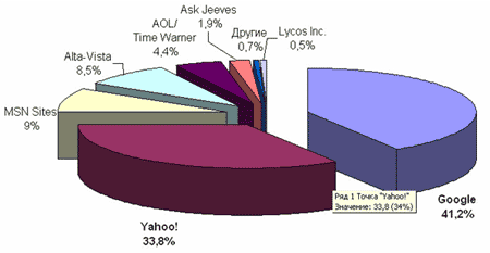 Більше як 80% всього пошуку в Інтернеті доводитися на 3 основні системи: Google, Yahoo!, MSN.