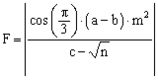 В8=(COS (ПИ()/3)*(B3-B4)*B6^2)/(B5-B7^0,5), для вычисления значения F по заданной формуле;