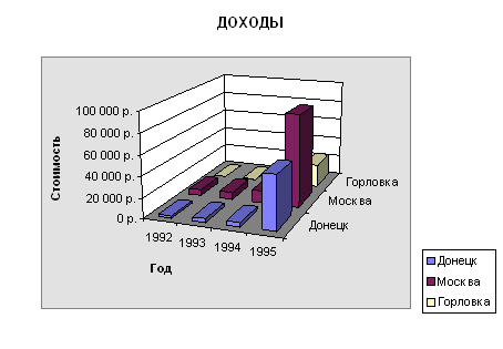 если первый столбец(строка) выделенного диапазона содержит текст (скажем, заголовки столбцов) или значения даты, то эти данные наносятся на ось X, или, как она еще называется, ось категорий.