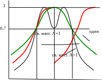 мало, то ω0,1 и ω0,2 практически сливаются и результирующая кривая совпадает с графиком АЧХ одиночного контура, при некоторой связи (