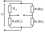 за схемою моста постійного струму (рис. 2.5), для якої результат вимірювання визначається з умови рівноваги