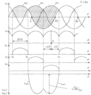 Для живлення навантажень середньої і великої потужності використовують трифазні випрямні схеми, які мають порівняно з однофазними ряд переваг: