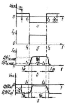 Мал. 7.21. До пояснення перехідних процесів при роботі транзистора в режимі ключа