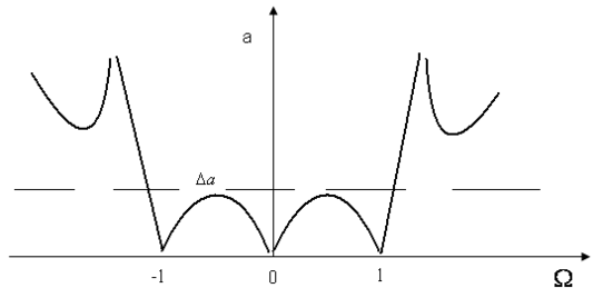 Характеристика загороджувального фільтра має вигляд, зображений на (мал. 8)