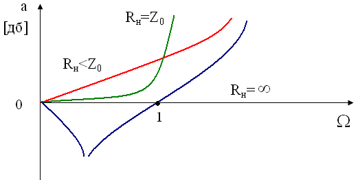 Як видно з мал. 13 опір сильно залежить від частоти як по характеру так і по величині. Це характерно для будь-якої схеми фільтру. Отже, бажаючи здійснити узгодження навантаження, потрібно було б для кожної частоти підбирати свій опір навантаження \в смузі пропускання – активне, в смузі затримки - реактивне. Між тим, в дійсних умовах роботи опору навантаження, як правило, являється практично не залежним від частоти активного опору Rн. Звідси слідує, що в загальному випадку фільтр працює на неузгоджене навантаження, і до режиму узгодження можна лише наблизитись.