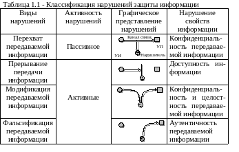 Приведенная выше классификация нарушений защиты информации представлена в таблице 1.1.