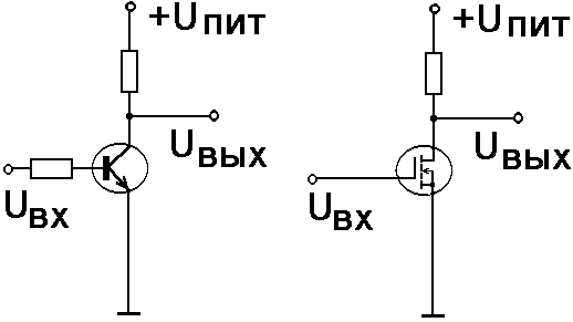 Рис. 2. Инвертор на основе биполярного и МОП транзисторов