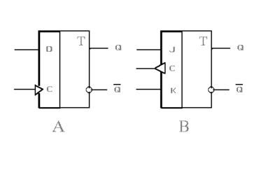 Рис. 4 D-триггер (A) и JK-триггер (B).