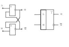 Здесь состояние S=1 и R=1 является неопределенным (проанализируйте работу схемы и скажите почему?).