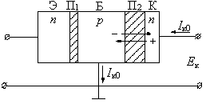 Подключение внешнего напряжения позволяет изменить ширину p-n-перехода и высоту потенциального барьера. Различают прямое и обратное включение p-n-перехода. Схема прямого включения приведена на рис.3. Источник Епр действует встречно внутреннему полю, поэтому уменьшаются ширина p-n-перехода и высота потенциального барьера. Основные носители электроны получают возможность для диффузии из n-слоя в p-слой.