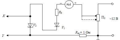Рис.14. Схема для снятия вольтамперной характеристики диода при помощи осциллографа: Х – горизонтальный вход осциллографа, Y – вертикальный вход