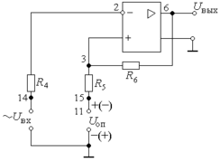 Примечание: студенты, получившие подвариант А, строят временные диаграммы uвх(t), uвых(t), uоп(t) для двухвходового компаратора; подвариант Б – временные диаграммы uвх(t), uвых(t), uпор(t) для триггера Шмитта; подвариант В – временные диаграммы uвх(t), uвых(t), uоп(t), uпор(t) для двухвходового компаратора с положительной обратной связью (ПОС). Напряжение насыщения усилителя Uн± = 7 В.