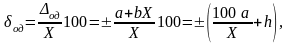 Підставляючи це співвідношення в рівність (2.5), одержимо двочленну формулу для нормування границь допустимої відносної основної похибки, вираженої у відсотках: