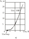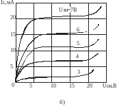 Стоковые (выходные) характеристики полевого транзистора с р-n- переходом и каналом n- типа показаны на рис. 5.3, а. Они отражают зависимость тока стока от напряжения Uси при фиксированном напряжении Uзи: Ic = f(Uси) при Uзи = const.