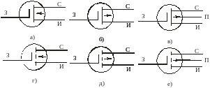 Рисунок 5.6 – Условное обозначение МДП - транзисторов: