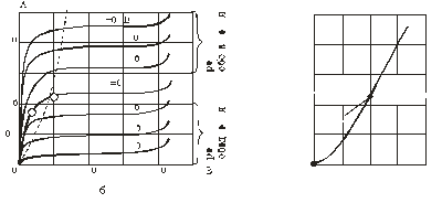 Рисунок 5.3 – Вольт-амперные характеристики полевого транзистора с р-п- переходом и каналом п- типа: а – стоковые (выходные); б – стоко - затворная