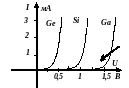 Из таблицы и формулы (1.1) следует, что при положительных (прямых) напряжениях ток через р-n переход с увеличением напряжения резко возрастает, поэтому