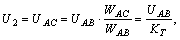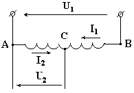 Подводимое к трансформатору напряжение U1 = UAB равномерно распределяется между витками первичной обмотки.