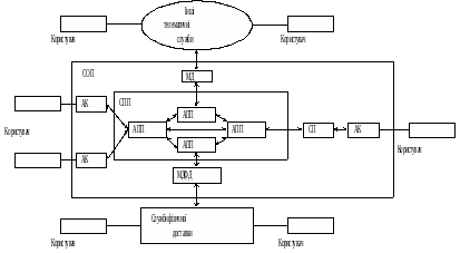 СОП (Система обміну повідомленнями). Функціональна структура СОП приведена на рис.3.3. У цій моделі користувач вважається або відправником повідомлення (при передачі), або одержувачем (при прийомі).