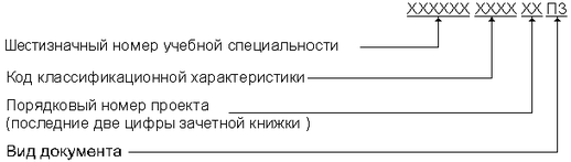 Пояснительной записке присваивается шифр, который записывается на титульном листе под надписью “Пояснительная записка”. Вид шифра показан ниже. Учебная специальность имеет номер 230101. Код классификационной характеристики присваивают по классификатору ЕСКД или отраслевым классификаторам. Если тема не имеет кода, то на месте кода в обозначении записывается четыре нуля.