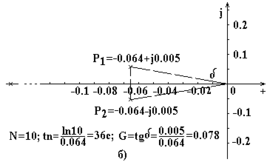 Рис.7.2. Полюсы передаточной функции САУ рис.3.1 при входном воздействии Z(t), Ку = 20, Кос = 1.0 (а) и Кос = 20 (б).