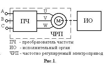 Современный частотно регулируемый электропривод состоит из асинхронного или синхронного электрического двигателя и преобразователя частоты (см. рис.1.).