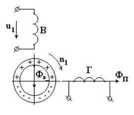 Обмотка возбуждения создает пульсирующий магнитный поток Фв.