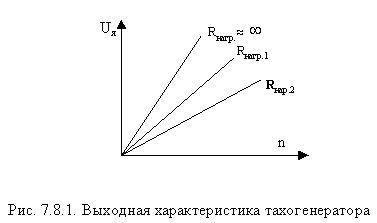 На рис. 7.8.1 показана выходная характеристика тахогенератора при различных Rнагр.