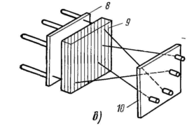 а, б — однополюсный и многополюсный соединители; в — голографический коммутатор;