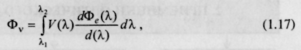 значения 0,38 и 0,76 мкм, соответствующие границам видимого диапазона, то можно оценить эффективный поток для человеческого глаза. Аналогичным образом может быть проведена оценка и для любого другого селективного фотодетектора. В этом случае в формулу (1.17) необходимо подставить вместо кривой видности