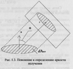Энергетическая яркость -сила излучения с единицы излучающей поверхности в данном направлении, отнесенная к площади ортогональной проекции излучающей поверхности на плоскость, перпендикулярную указанному направлению (рис. 3.2)