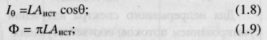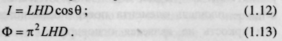 В случае, когда приходится иметь дело с равнояркими источниками, для определения силы света и потока излучения от тел простой формы легко получить следующие расчетные формулы: