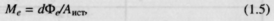 Энергетическая светимость Мс(поверхностная плотность потока излучения) - поток излучения, отнесенный к единице площади излучающей поверхности