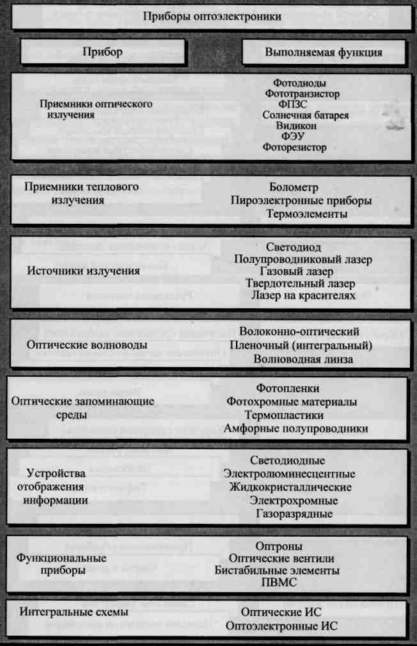 м. Однако практически из данного диапазона средствами оп-тоэлектроники используется область 0,1-100 мкм. Это обстоятельство не является случайным. По энергетической шкале данному диапазону соответствует область энергий 0,01-10 эВ. Кванты света с такой энергией способны возбуждать только валентные электроны в собственных и примесных полупроводниках. Действительно, ширина запрещенной зоны широкозонных полупроводников составляет единицы электронвольт, а энергия возбуждения примесных атомов в германии и кремнии - сотые доли электронвольт. Вне этого интервала энергий взаимодействия света с веществом носят качественно иной характер. Так, при углублении в коротковолновую область спектра начинает сказываться возбуждение электронов внутренних оболочек атома, а в длинноволновой области, когда фотоны уже не способны ионизировать атомы вещества, их воздействие проявляется в виде экситонной и фотонной генерации. Весь оптический диапазон разбит на три основные области: