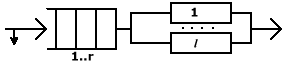 | Одноканальная с групповым обслуживанием заявок | G | Gr | 1 r |