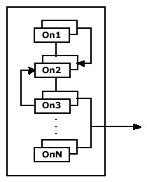 При сложном режиме диалога работа абонентов представляется в виде совокупности операций некоторого процесса, называющимся технологическим. Каждая операция технологического процесса моделируется соответствующей СМО. Причем, часть операций может предусматривать обращение к ВС, а другая часть может замыкаться сама на себя.
