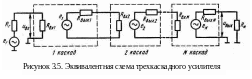 Как пример рассмотренного на рисунке 3.5. показана эквивалентная схема трехкаскадного усилителя, на которой каждый каскад представлен активным четырехполюсником.