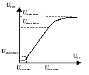 Амплитудная характеристика. Графическая зависимость амплитуды (или действующего значения) выходного напряжения усилителя от амплитуды (или действующего значения) его входного напряжения на некоторой неизменной частоте сигнала получила название амплитудной характеристики (рисунок 3.7).